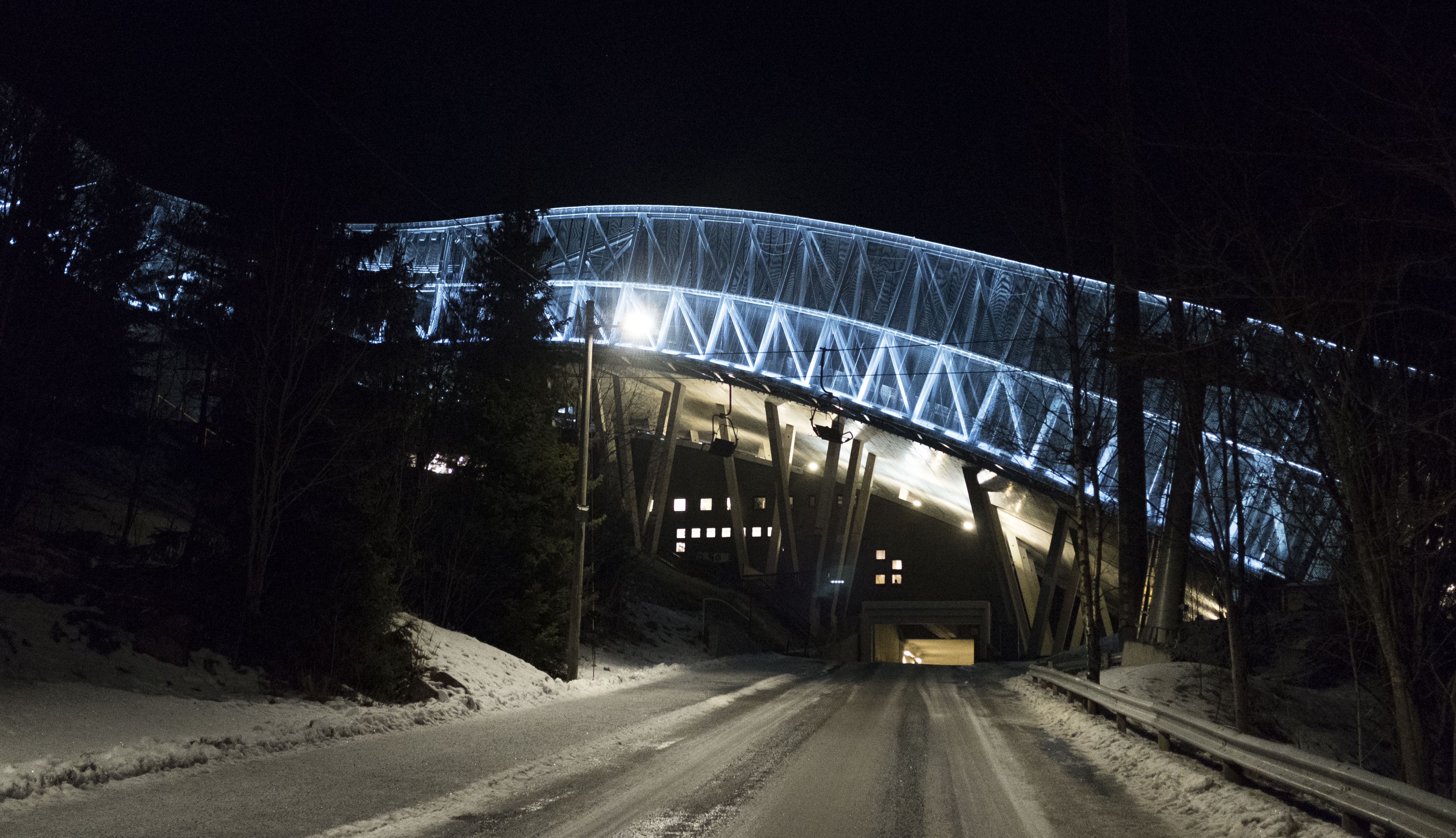 Det er en mørk, men ikke veldig kald mandag ettermiddag i Holmenkollen. Bakken er isete, men det er ikke mye snø å se i terrenget. Det er nettopp dette Protect our Winters vil vekke oppmerksomhet rundt nå som de arrangerer bruktmarked på Skimuseet. Klokken er litt over halv seks.
