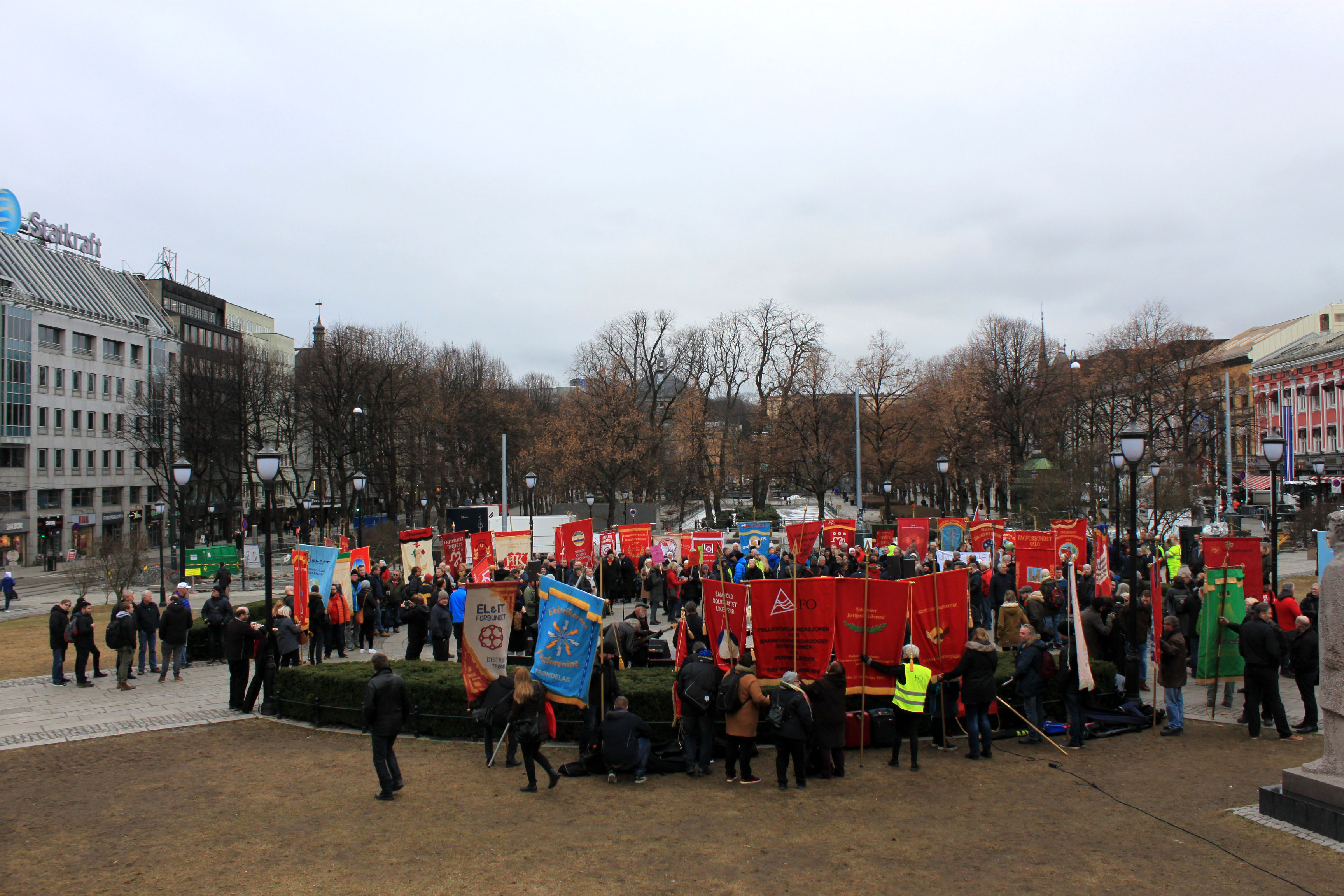 LO i Asker og Bærum, Fredrikstad, Larvik og Lardal, Oslo, Stavanger og Trondheim var initiativtakerne bak gårsdagens markering utenfor Stortinget. På Fagforbundets hjemmeside står det at Stortingsflertallet har etter initiativ fra Høyre/Frp-regjeringa vedtatt en rekke forverringer av arbeidsmiljøloven. LO vil at Regjeringens arbeidsutvalg og ønske om å forverre tjenesteloven skal avvises. Bemanningsbyråene som var ment å erstatte faste ansatte ved sykdom og permisjoner har i mange år hatt fullt frislipp, og nå er NSB i fare for å bli et bemanningsbyrå.