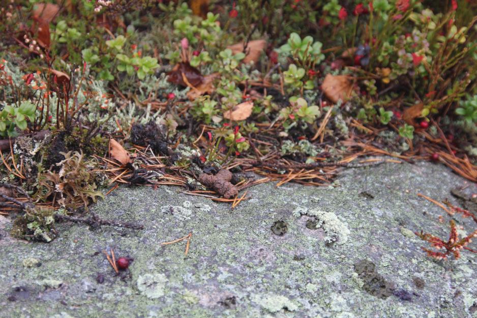 I jaktterrenget består bakken for det meste av myr og mose. Den våte mosen gjør sitt beste for å suge tak i støvlene til den som våger å gå på den, men må gi tapt med et stort ”shvupp,” hver eneste gang. Overalt glinser det av store, saftige blåbær som venter på å bli spist. Innimellom er små klaser av tyttebær, på langt nær like store eller søte, men like fargesprakende.