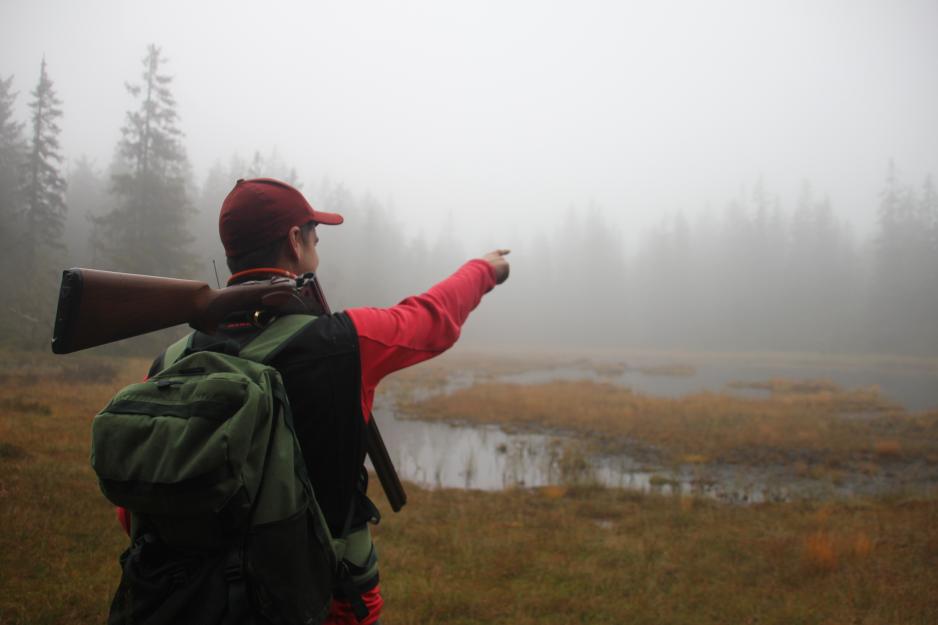 Det er tåke i luften og vått på bakken i utkanten av Finnemarka en typisk høstmorgen i september. Kenneth Karlsen (27) skal jakte på skogsfugl, sammen med gordonsetteren Milla.