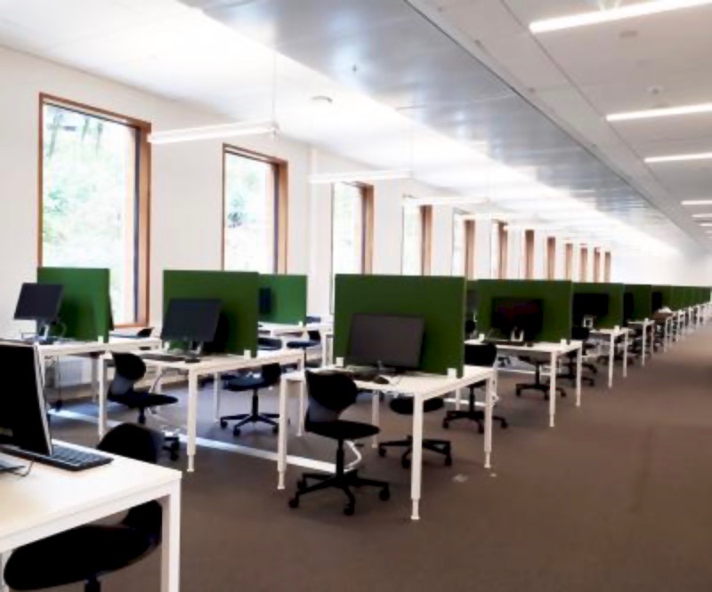 I Silurveien finnes det 414 plasser fordelt på tre saler. Hver av plassene er utstyrt med datamaskin, mus og tastatur. Det er også kort vei til toalettene, skriver førstekonsulent ved seksjon for eksamen og studieadministrative systemer, Maren Røe Væråmoen i en melding.
