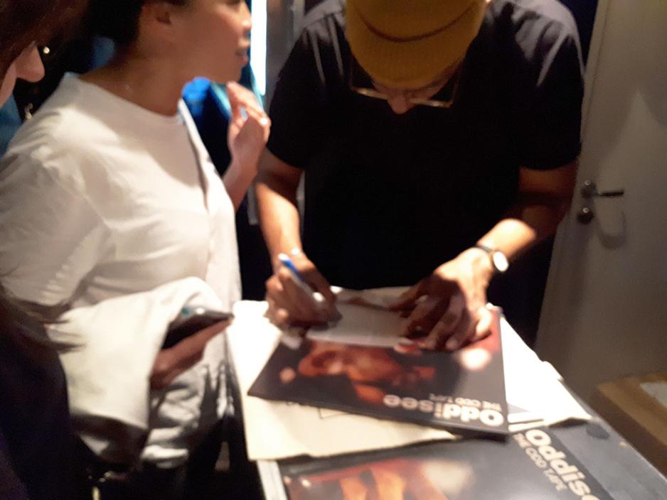 Det dannet seg kø foran boden, som hadde med t-skjorter og LP- utgaver av utvalgte utgivelser, både av Oddisee og Olivier St.Louis. Og Oddisee holdt det han lovte og møtte fansen sin med store smil og delte ut klemmer og autografer.