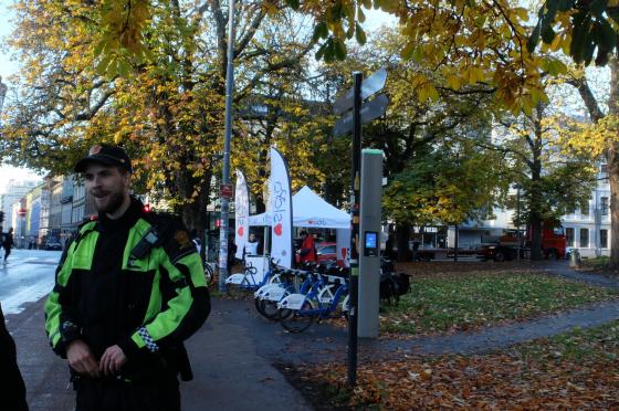Politiet stopper syklister på sykkelveien som går fra Gruneløkka og inn mot sentrum. De sjekker at bremsene fungerer, at syklistene har lykter og at alle har ringerklokke. Om noen mangler lykter blir de henvist til standen fra Sykkelprosjektet i Oslo hvor de kan få lykter til sykkelen.