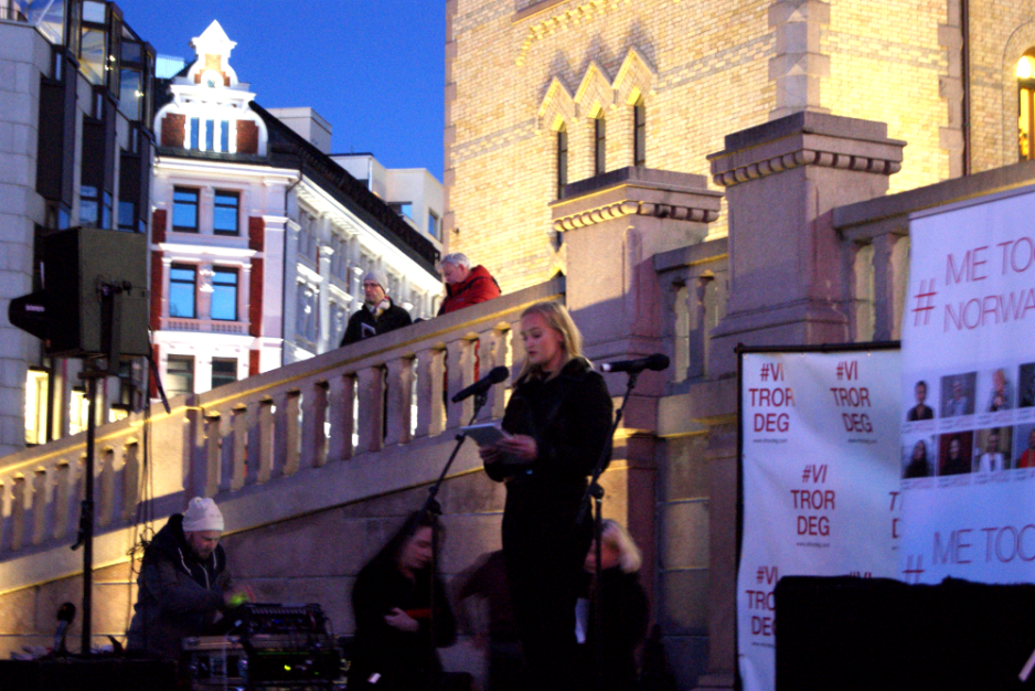 Mange møtte opp da kampanjen mot seksuell trakassering og overgrep ble markert søndag kveld utenfor Stortinget.