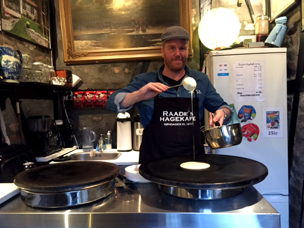 – Det er ikke så mange i Oslo som har hage, så jeg synes at vi som har det skal dele den med andre, sier Raade. En av dagens siste kunder kommer inn og bestiller to sveler. I fjor var det 10 000 innom kafeen, og den har bare åpent på søndager.
