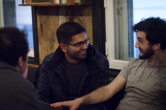 Holm og romkameratene hennes, Guilherme Camelo (26) og Rafael Garcia (23) fra Brazil, er på språkcafé for tredje gang i kveld.