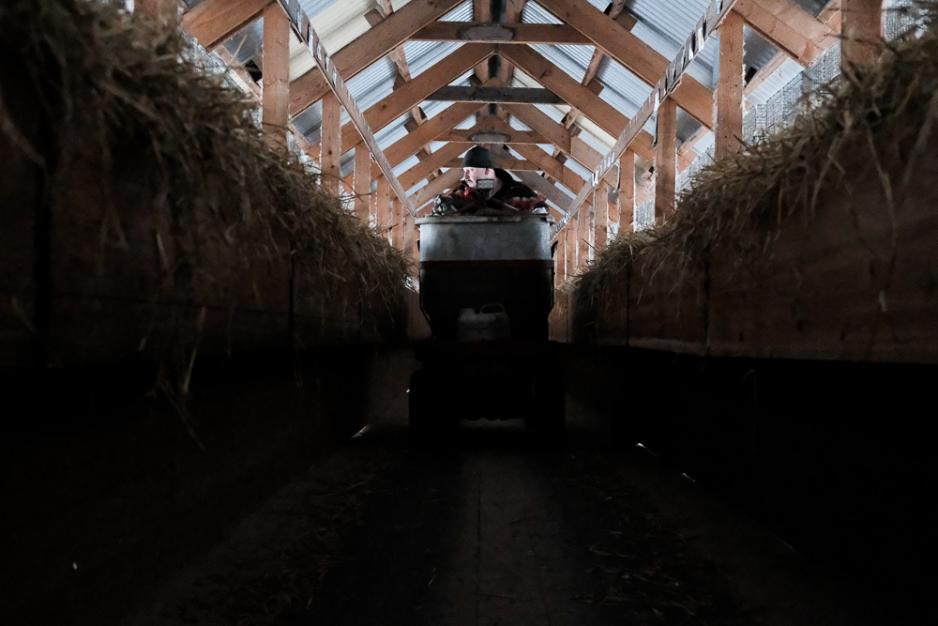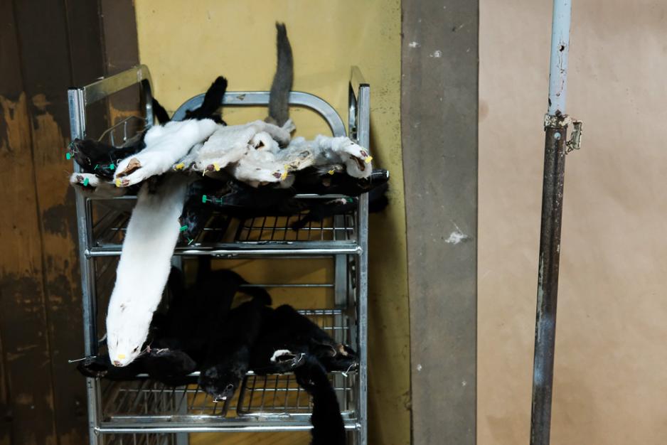 Hele prosessen fra avling til slakt og utvinning av pels foregår her på gården.