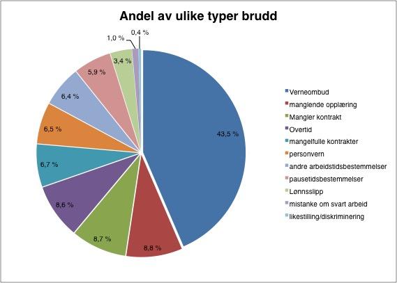 I 2017 var det største rettighetsbruddet, med 43,5 prosent, mangel på kunnskap om verneombud.