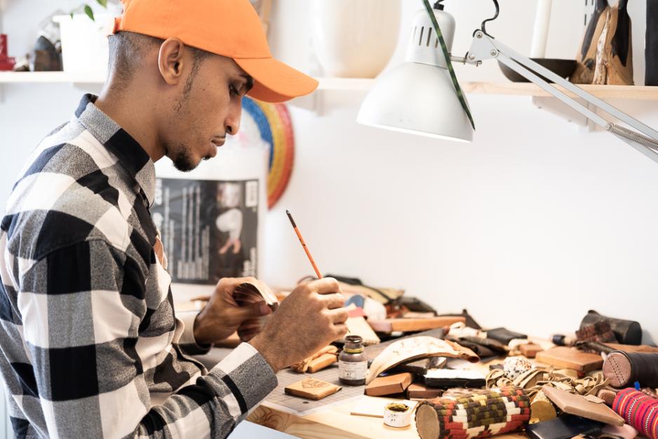 Ahmed Umar kom som politisk flyktning til Norge i 2008. Nå har han eget atelier hos Kunstnerforbundet.