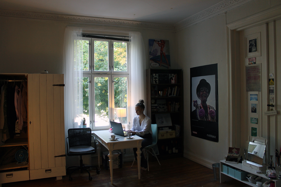 På kjøkkenet blir kaffen mørk. En skje rører rundt i koppen. Lukten av kaffe sprer seg i rommet. Forsiktig bærer hun kaffekoppen inn på rommet i kollektivet i en gammel bygård på Grünerløkka. Det er høyt under taket. Tregulvet knirker. Rommet hennes ryddig og pyntet med noen få bilder på veggen. Blant annet en plakat fra Molde Jazzfestival. Et bilde av rapperen Tupac. En billett fra fjorårets Øya-festival. Et kort med ordene “I taste the future”.
