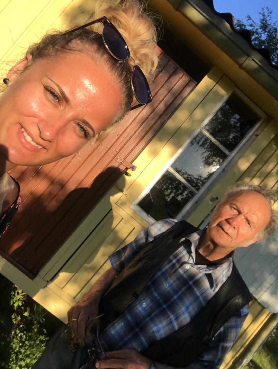 Tilbake i leiligheten lener Sara seg frem i stolen og gestikulerer med hendene når hun forteller om farfaren sin. Hun forteller at de har et sterkt bånd.