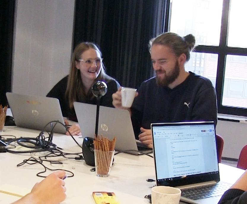 Latteren sitter løst rundt bordet, spesielt etter historien om vaskemaskinen, men det er alvorlige saker de engasjerer seg i.