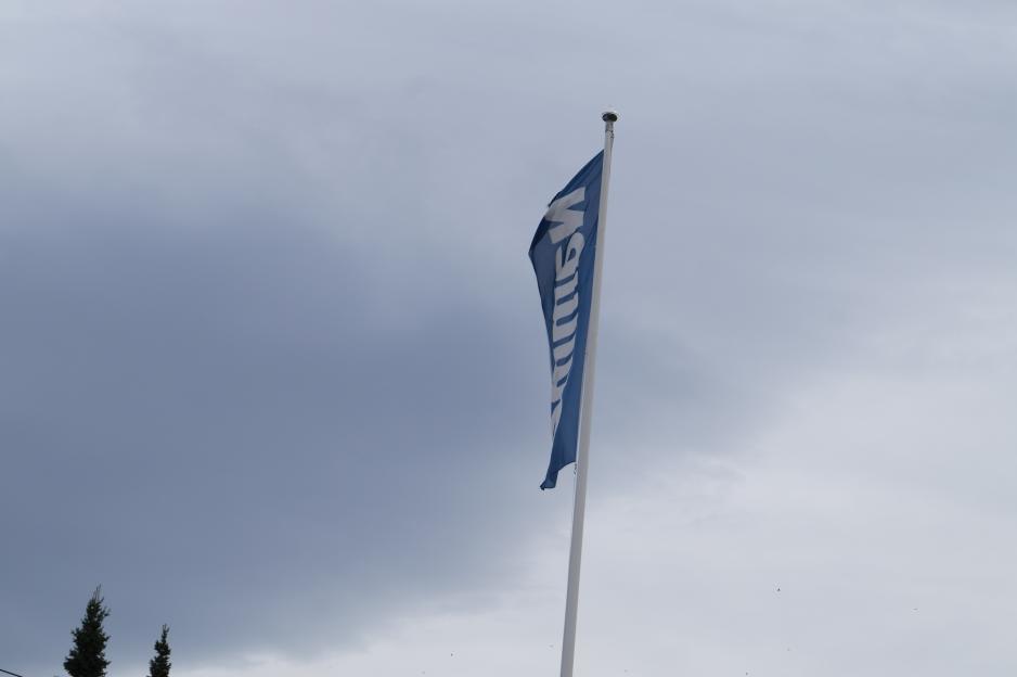 Kommunikasjonsdirektør Endre Lunde står ulastelig antrukket med blå skjorte, ID-kort rundt halsen og med en rød allværsjakke med Nammo-logoen på brystet utenfor hovedinngangen til kontorene deres. I den lette brisen vaier to blå flagg med hvit logo. Han hopper i bilen, og kjører avgårde mot produksjonshallene, som bare ligger et par minutters kjøretur unna.
