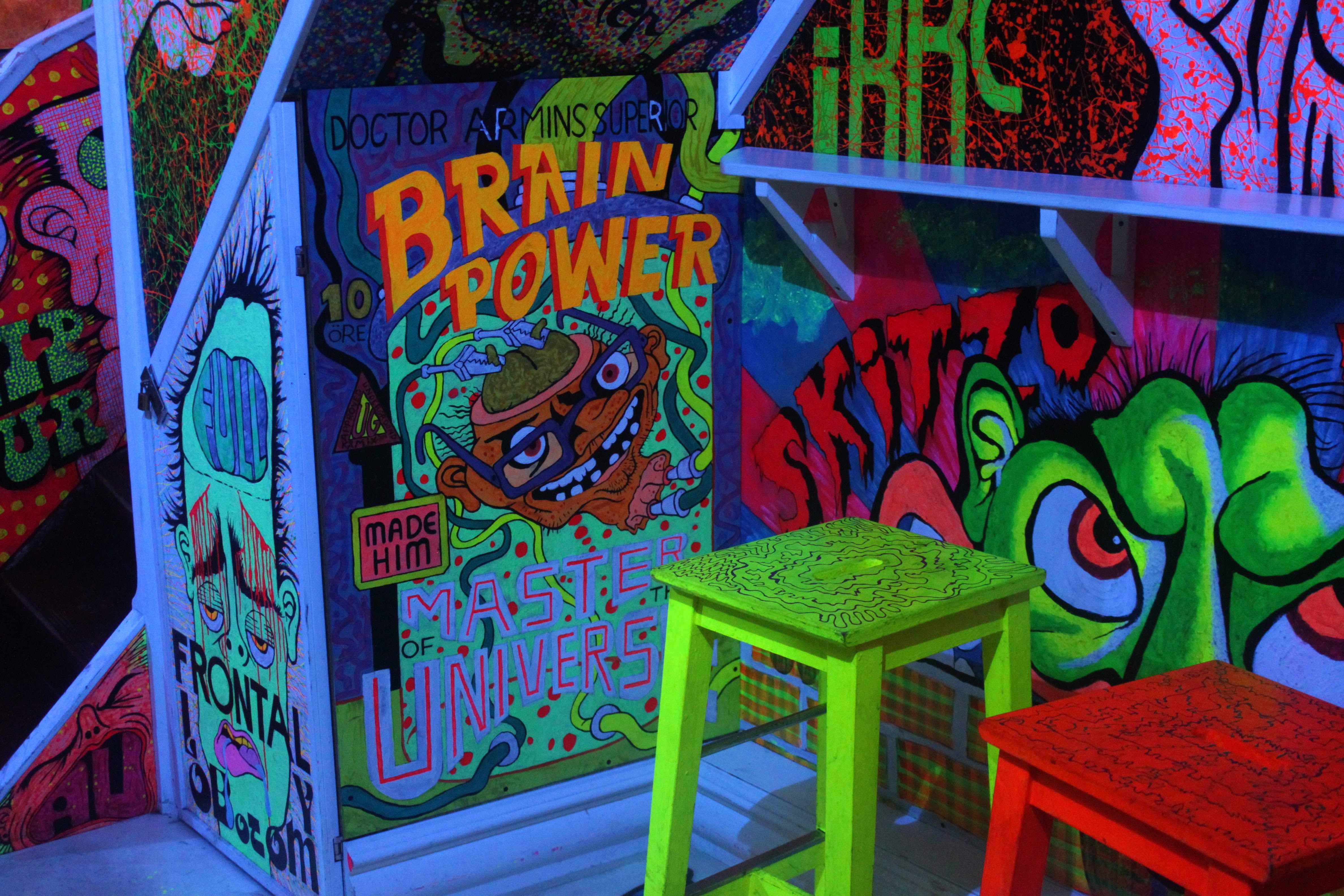 Misfornøyelsesbar, som åpnet i juli 2018 er utsmykket med tegneserieskaper, dramatiker og animasjonsfilmskaper Christopher Nielsens særegne kunst. Kunsten er skreddersydd for stedet, og det ligger en tanke bak hver minste detalj.