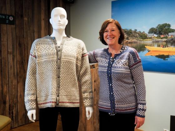 Designer Olaug Kleppe som fikk i oppdrag å lage mønsteret, fant mye inspirasjon i gamle kofter. Garn og oppskrifter til koften ble solgt på tirsdagens arrangement.
