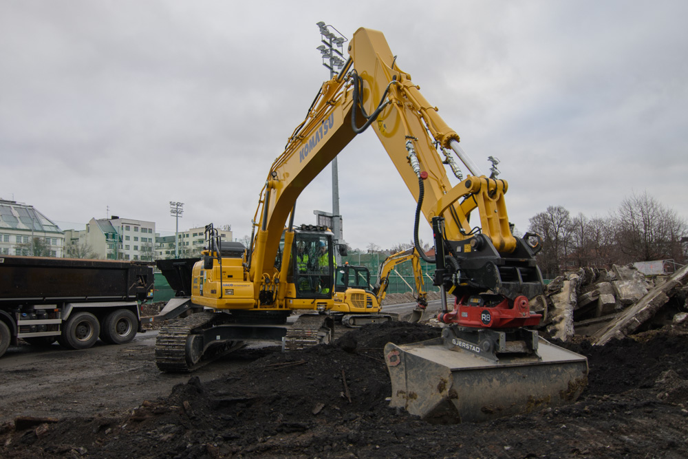 – Endelig er vi i gang, sa byrådsleder Raymond Johansen (Ap) da han og byråd Kjetil Lund markerte byggestarten for nye Frogner ishall. Johansen satt bak spakene i en 32 tonn tung gravemaskin da han tok første tak i jorda. Gravemaskinen gikk utelukkende på fossilfritt drivstoff, slik som alle maskiner skal gjennom hele byggeperioden.