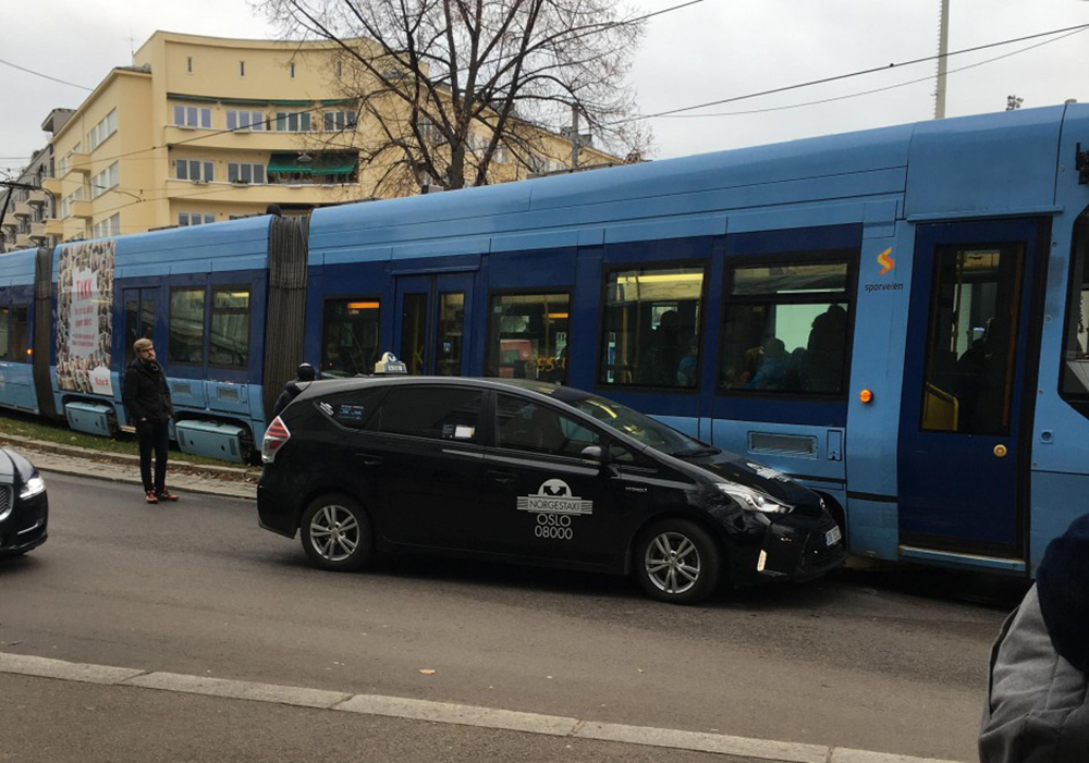 Nødetatene og politiet rykket ut til Bislett i formiddag etter at en drosjebil hadde kollidert med en forbipasserende trikk. Klokken 10:39 meldte Operasjonssentralen på Twitter at det var ukjent personskade, men at kollisjonen kom til å skape trafikale utfordringer i området.