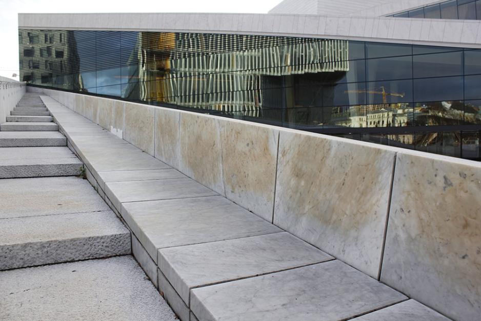 - Arkitekten var fiksert på Carrara-marmor av estetiske grunner, og lot seg ikke rikke av argumenter. Dette med god støtte fra aktører i Statsbygg, skriver Andersen i en epost.