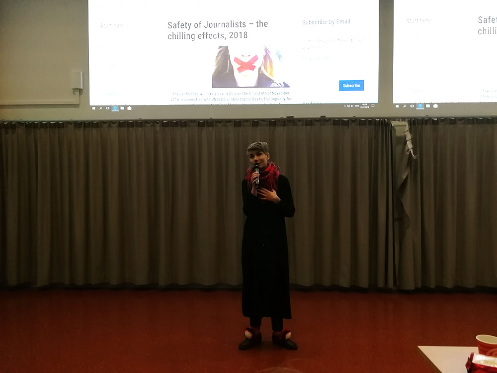 Konferansen Safety of Journalists - the chilling effects gikk av stabelen på OsloMet på mandag. Som en del av åpningen opptrådte Stjernekampvinner Ella Marie Hætta Isaksen med joik.