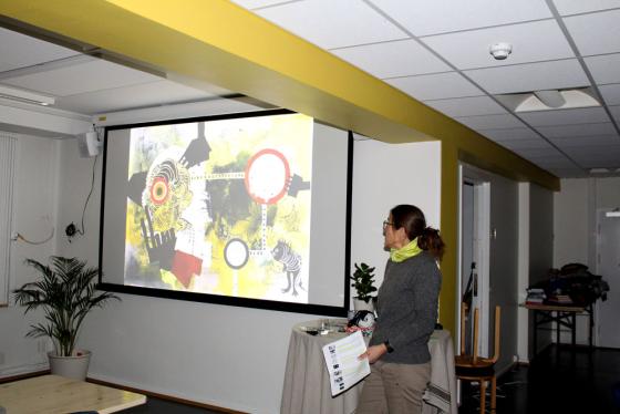 Kunstner Pippip Ferner holder foredrag om hvordan en kan bruke kunst for å minske plasten i havet.