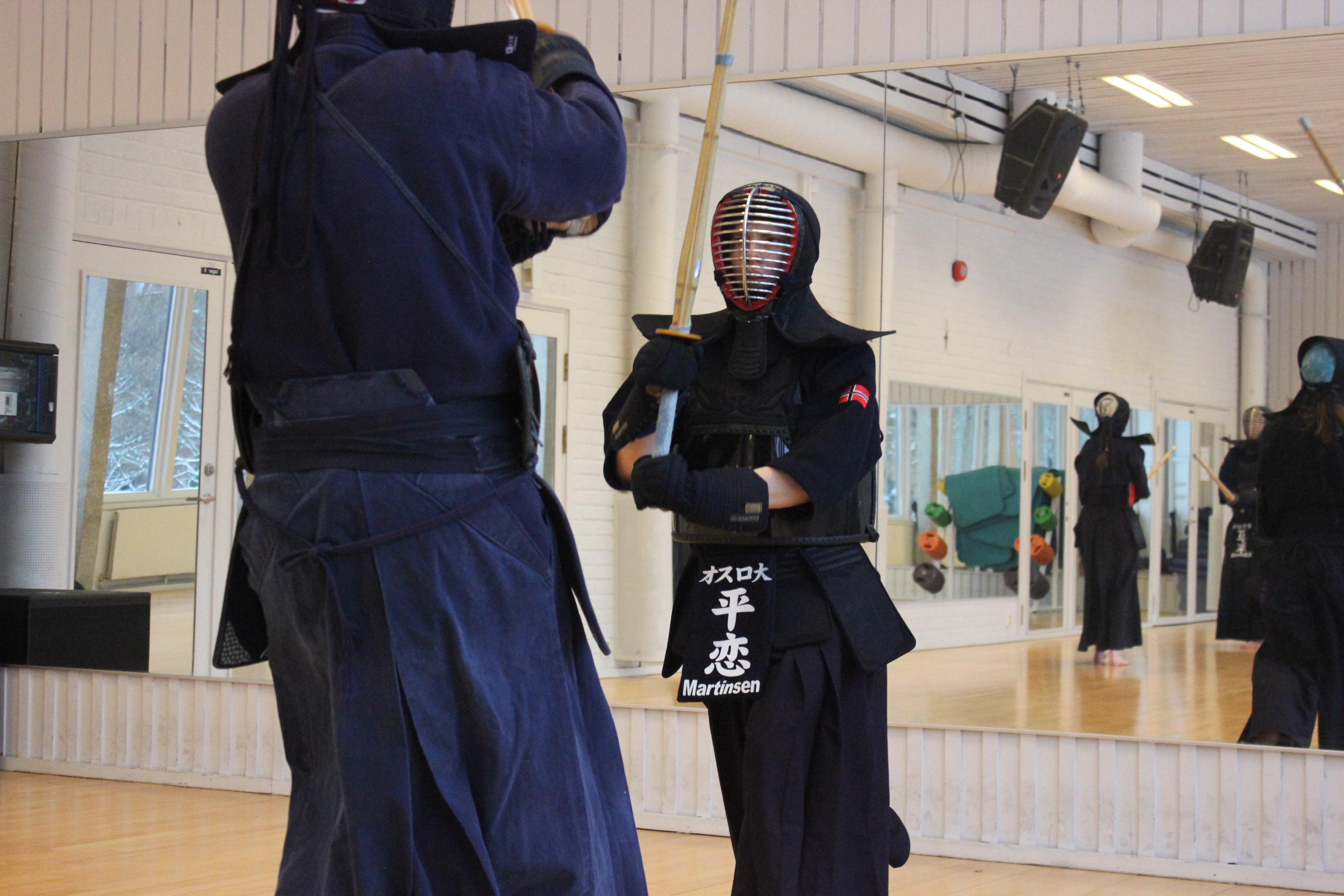 Ute faller snøen, stille og forsiktig. I sal fem på Athletica Blindern, med en umiskjennelig lukt av innestengt gymsal, er lydnivået et helt annet. Høye rop fra fire personer som med hvert sitt bambussverd slår mot hverandre.
