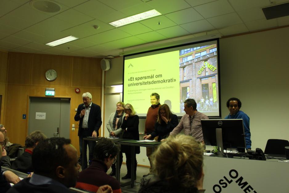 Tirsdag formiddag møtte hun og andre opp for å overvære lanseringen av by- og regionforskningsinstituttet NIBRs evaluering av OsloMets ordning med fakultetsråd. Evalueringen konkluderer med at OsloMet har det minst utviklede universitetsdemokratiet i Norge.