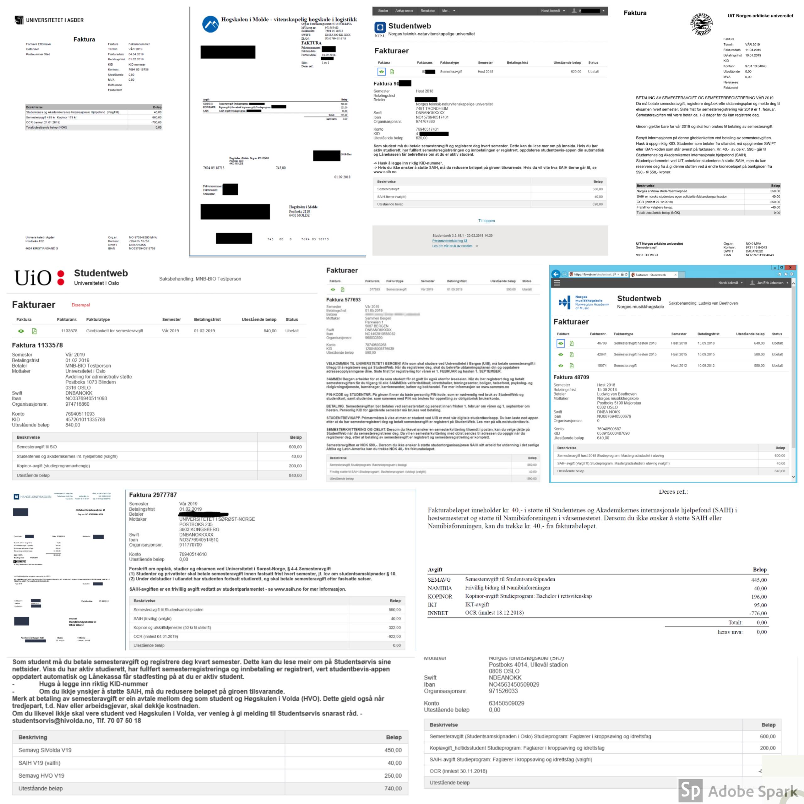 Institusjonene velger å fakturere studentene sine på ulike måter, og i 24 av 26 av fakturaene der den frivillige avgiften går til SAIH er det funnet klare brudd på forskriften.