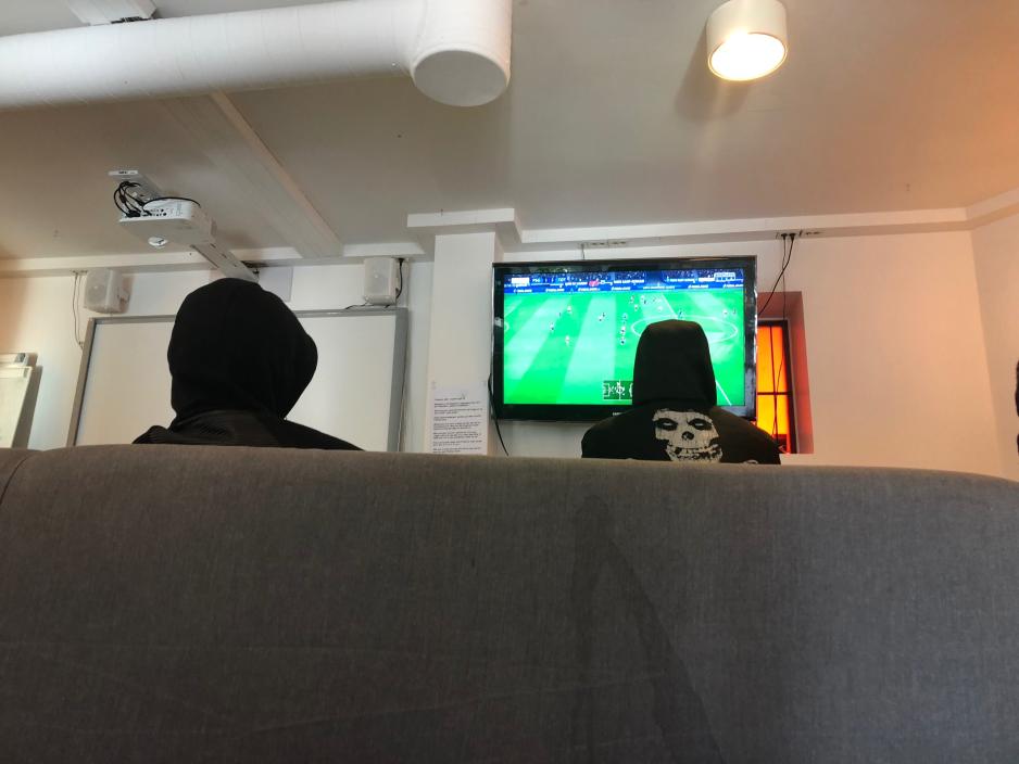 FRITIDSKLUBBEN: Gjennom døren på ungdomsklubben paserer det unge gutter. Alle high-fiver, alle smiler, alle er venner. Foto: Mina Ridder-Nielsen Janssen