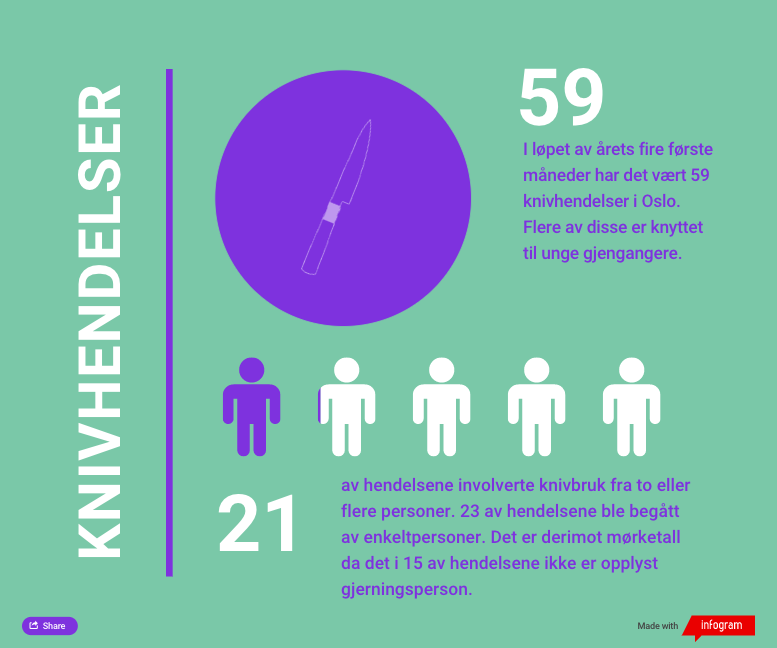 Journalen har prøvd å få en hendelseslogg fra politiet på antall knivhendelser så langt i år, men politiet hevder de så langt ikke har kartlagt hendelsene. De viser derimot til fjorårets tall over unge lovbrytere i Oslo, som nettopp ble lagt frem.