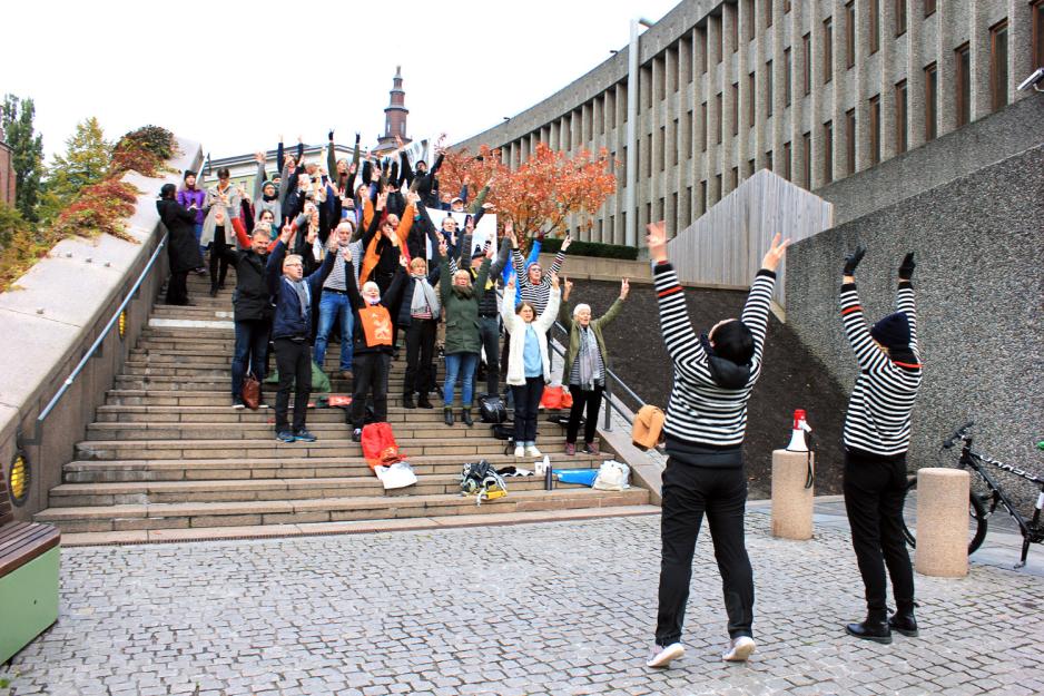 Slik lyder det fra Kristin Notø, om at Y-blokka skal rives. Hun er en av arrangørene for sitteaksjonen for Y-blokka, sammen med Maria Danielle Zachariassen. Hver torsdag ettermiddag stiller flere frivillige opp i stripete gensere til en sitteaksjon. Det gjør de for å bevare bygget som er en del av det nåværende regjeringskvartalet. Denne torsdagen møtte det opp rundt 40 stykker til sitteaksjon.