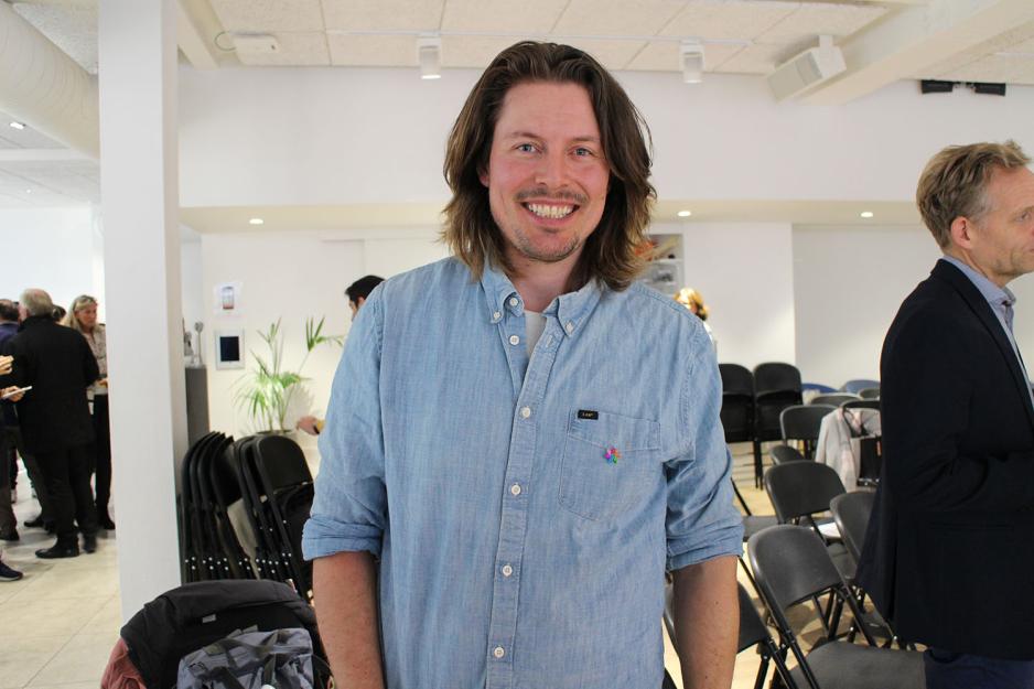 Alexander Read (38) er en av to frivillige som ble hentet opp på scenen i går. Han ble trukket frem som eksempel på hva frivillige kan opprette.