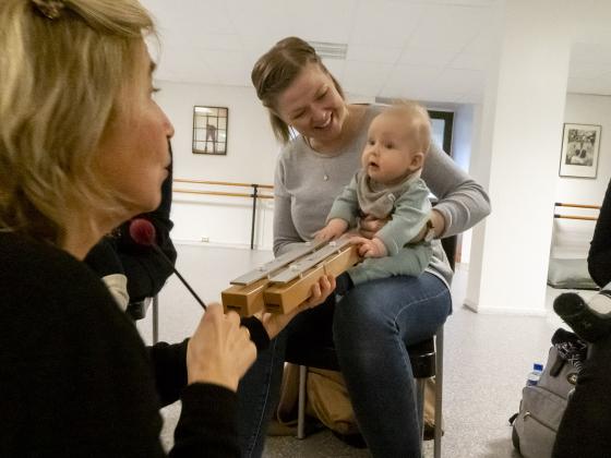 Musikk i livets begynnelse er et pedagogisk opplegg som arrangeres på Oslo kommune, og Ingrid Glendrange er en av mødrene som deltar på kurset sammen med sønnen Olav (fem måneder).