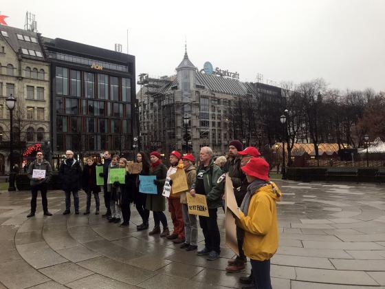 Gruppen Flystopp 2030 demonstrerer mot den tredje rullebanen som skal komme på Gardermoen, Oslo Lufthavn. De ønsker også et bedre og realistisk togtilbud som kan konkurrere mot fly.