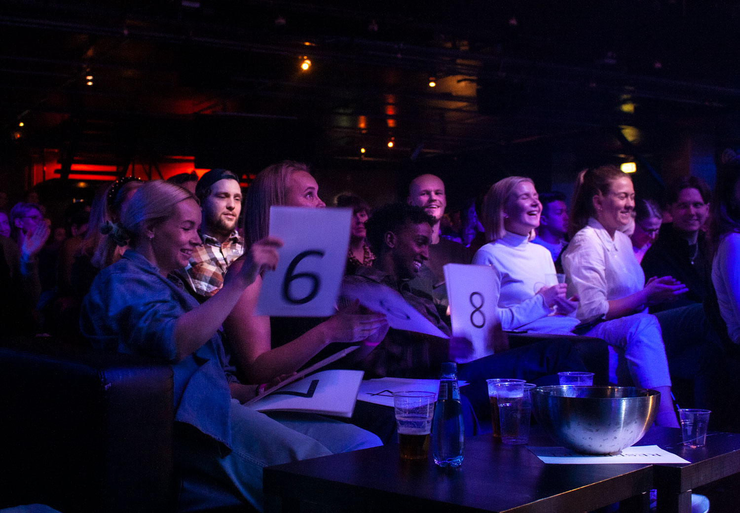 Marte Grevle og samboer Marius Thorkildsen endte opp i finalen sammen med Emil Hvattum Bjørnstad og Helge Langerud Heikkilä. De valgte alle å fortelle morsomme historier som de har opplevd over de tre minuttene de ble tildelt. Det var likevel historien om tretten år gamle Bjørnstad som fikk flest til å le.