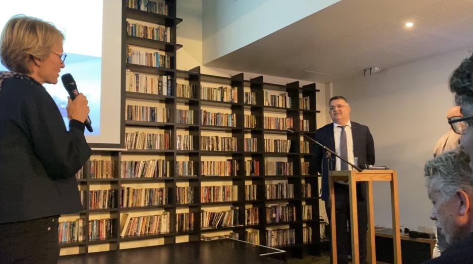 Daglig Leder i Bergen og Hordaland Turlag Helene Ødven stiller Kjell-Børge Freiberg spørsmål på slutten av konferansen. Foto:Sophia Zhichkina