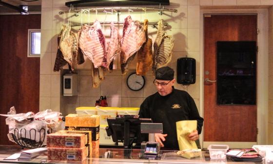 – Vi lager alt fra medisterkaker og julepølse her selv, og restene vi har bruker vi til å lage nye ting. Ribbe kan bli til bacon, for eksempel, forteller Sørensen og legger til: