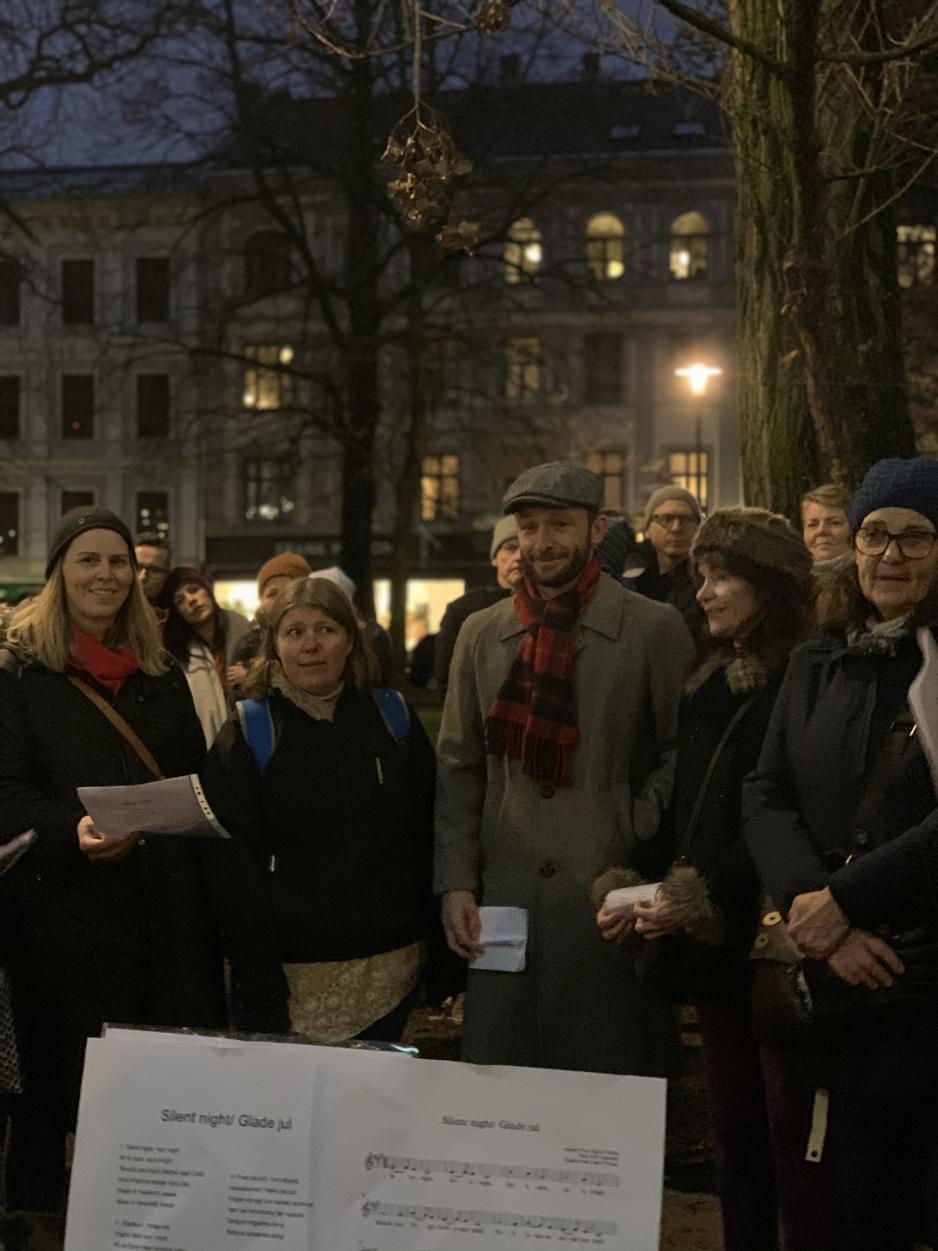 Lørdag var det tenning av lys rundt fontenen på Olaf Ryes plass i Oslo. Julen ble ønsket velkommen med blant annet musikk og god stemning.