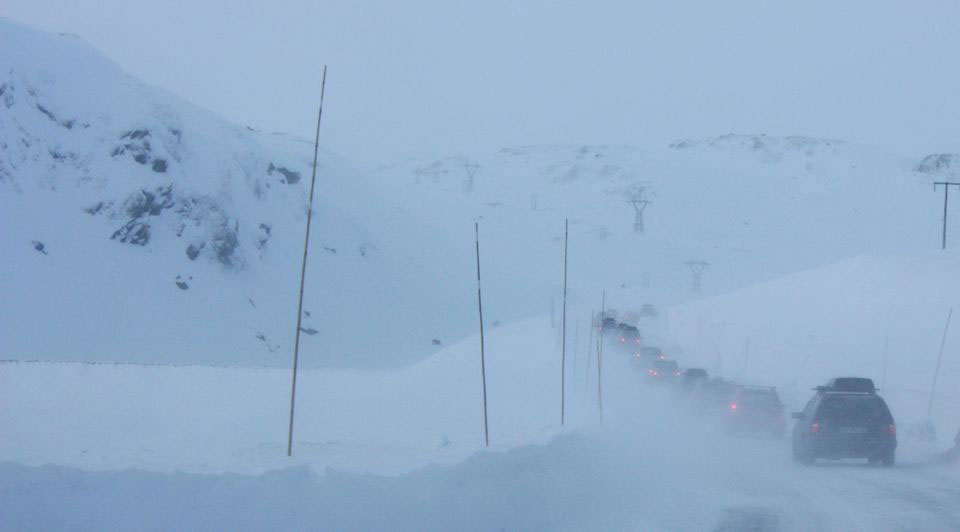 Flere fjelloverganger veksler mellom stengt og kolonnekjøring. Brøytede veier snør igjen på få minutter og gjør det umulig for gjennomkjøring.