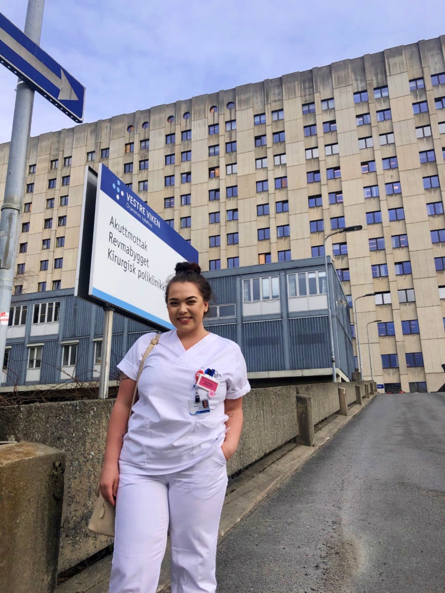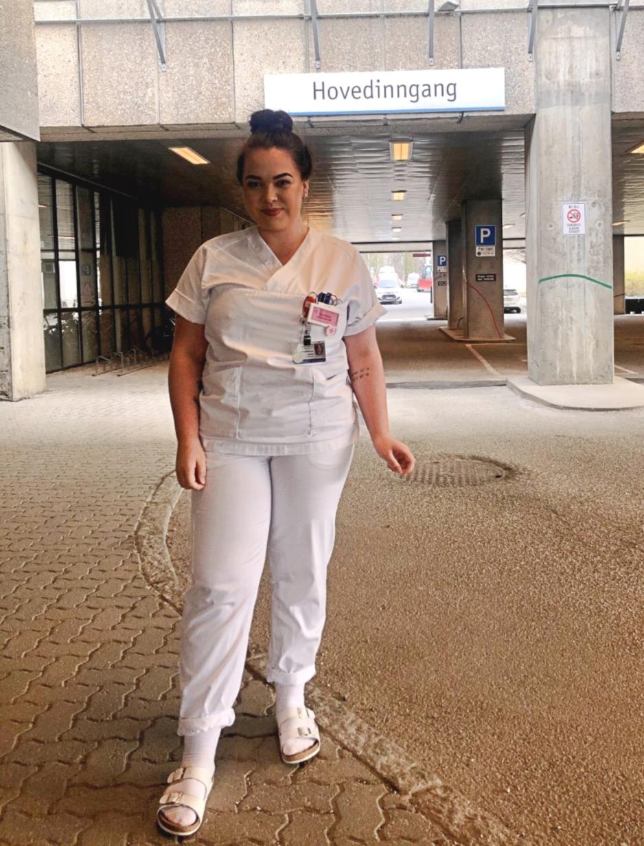 Sunniva Sandli (22) har jobbet som helsefagarbeider ved sykehuset i fire og et halvt år. Hun er en av de mange omtalte heltene i samfunnet som trosser smittefaren av viruset covid-19, som i den siste tiden har herjet verden rundt.