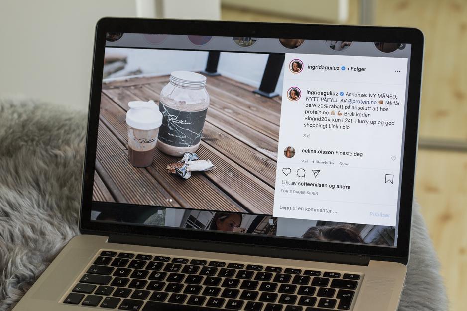 Kjente påvirkere på Instagram inngår samarbeid med Protein.no. Annonsøren selger proteinpulver og tilskudd de hevder skal ha fettforbrennende og sultdempende effekt. Ifølge markedsføringsloven skal barn og unge beskyttes ekstra for reklame som kan bidra til kroppspress.