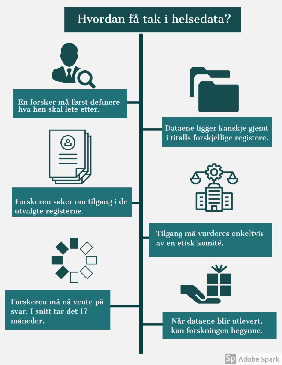 Trykk for å se prosessen forskere må gjennom for å motta helsedata ↘
