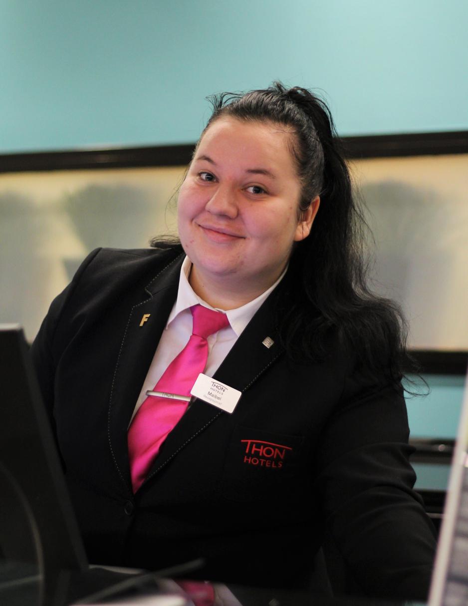 – Velkommen til Thon Hotel, du snakker med Maibel. Hva kan jeg hjelpe deg med? Sier den engasjerte resepsjonisten.