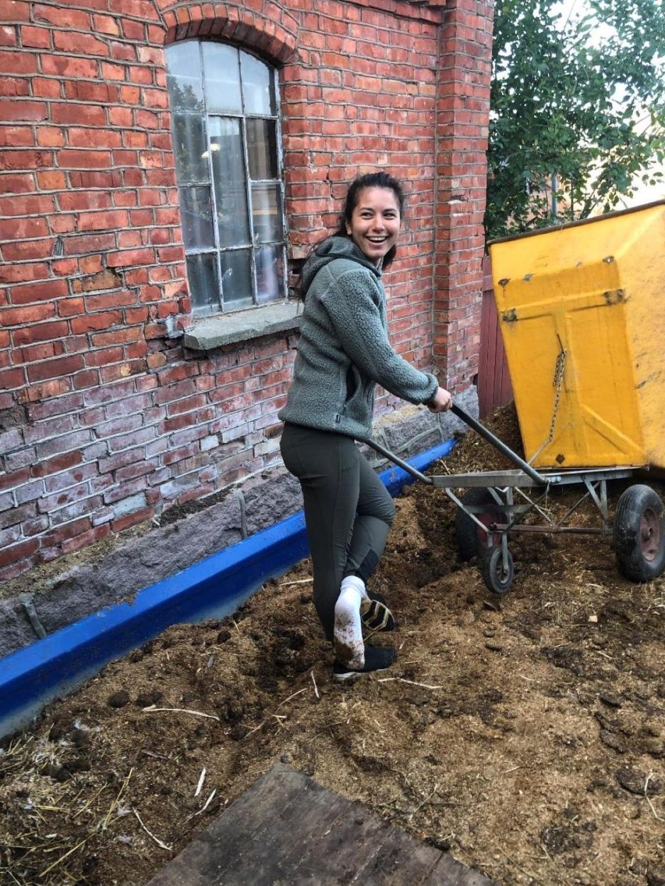 Victoria var en av de som startet klokken syv på jobb i dag. Hun jobber både i stallen på dagtid og som ridelærer på kveldstid.