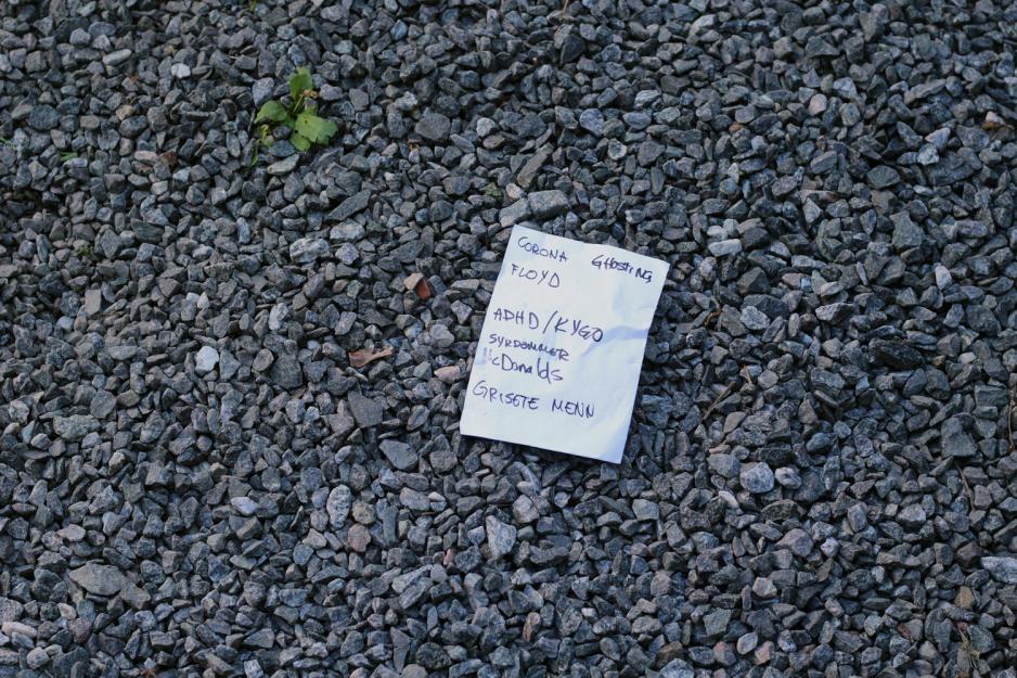 «Corona, ghosting, Floyd, ADHD/Kygo, sykdommer, McDonalds, grisete menn». Antakeligvis manuset til en av komikerne som var i aksjon under gårsdagen.