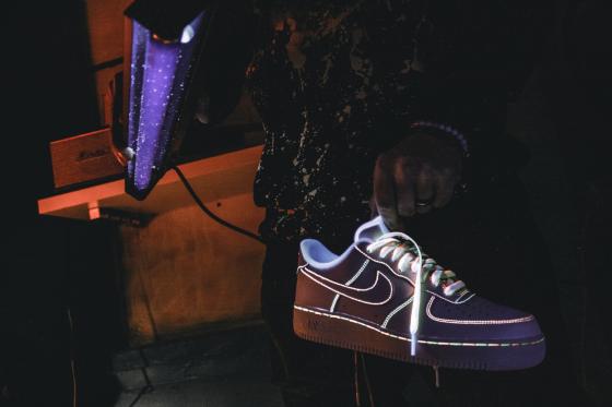 Air Forcen Henrik har på seg er et samarbeid designet av den kjente hiphop artisten Travis Scott (Nike Air Force 1 Low, Travis Scott Catcus Jack). Travis Scott er kjent som ett avde mest energiske artistene i dagens urbane scene. Han stagediver fra scenen og lager moshpits for fansen. Sneakersene i seg selv er noe som fenger oppmerksomheten, med en fargekombinasjon av svart, lyslilla, mørkeblå og mørkere oransje. Lissene rundt hetten hans er knytet sammen, i likhet med skolissene.