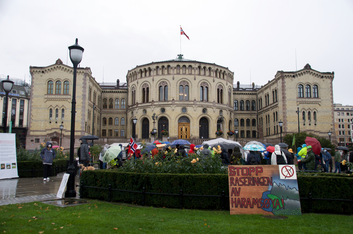Lørdag 10.oktober ble det arrangert demonstrasjon utenfor Stortinget mot utbyggingen av vindkraftverk på Haramsøy i Møre og Romsdal. Demonstrantene krever at utbyggingen stanses ettersom de mener det er flere feil i konsesjonen som er gitt til utbyggerselskapet Zephyr.