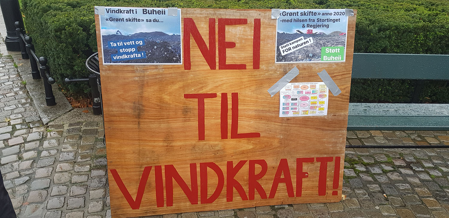 Lørdag ble det holdt en demonstrasjon mot utbyggingen av vindkraft, i regi av Jan Gunnar Berg. Demonstrantene føler de ikke blir hørt av regjeringen og får støtte ifra flere politiske partier.