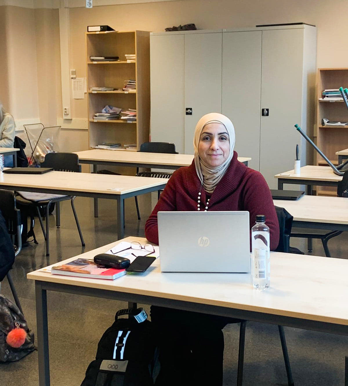 Khitm Jbouli er 51 år og går sitt andre år på helse og oppvekst ved Setesdal videregående skole avdeling Hornnes. Hun kom til Norge for tre år siden og mener at hun trenger å være i klasse med voksne og andre med utenlandsk bakgrunn, for da får hun mer hjelp enn å være med ungdommer.