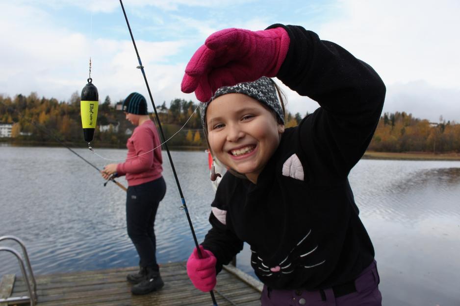 Torsdag 8. oktober arrangerte ferieklubben fiskedag i Prestsjøen sammen med Åmot jakt- og fiskeforening. Amalie Campos Dufseth (10) og Maja Thodesen (10) synes det er fint at de får muligheten til å delta på aktiviteter i høstferien.
