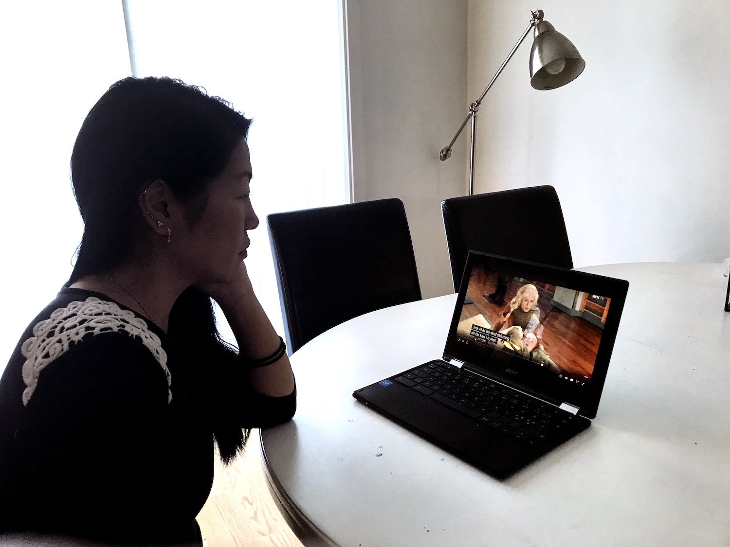 Siv Elin Høgseth er fra Asker og adoptert fra Sør Korea. Hun jobber på en ungdomsskole der NRK-serien er svært populær blant elevene.